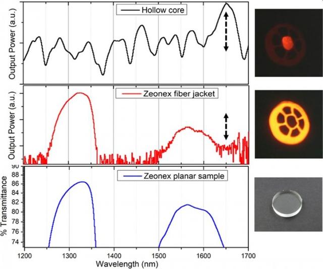 而 Cordeiro 教授開發(fā)了一種替代系統(tǒng),能夠在和微波爐差不多的設(shè)備上對原料進(jìn)行拉絲。在Cordeiro的設(shè)置中,透明的熱塑性聚合物顆粒被送入該設(shè)備,隨后該設(shè)備將其熔化,并通過一個定制的鈦噴嘴將熔融的材料擠出。根據(jù)該噴嘴的配置方式,被擠出的細(xì)光纖可以是實心的,也可以有多條空氣通道縱向穿過其內(nèi)部--后者被稱為微結(jié)構(gòu)光纖,或MOF。