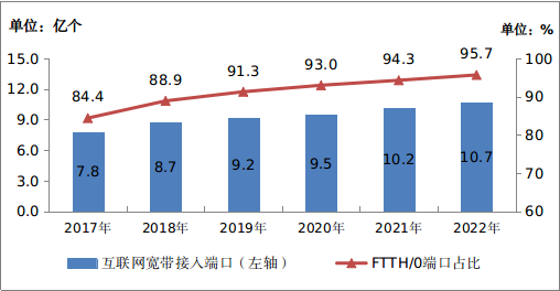 圖4-1 2017—2022年互聯(lián)網(wǎng)寬帶接入端口發(fā)展情況