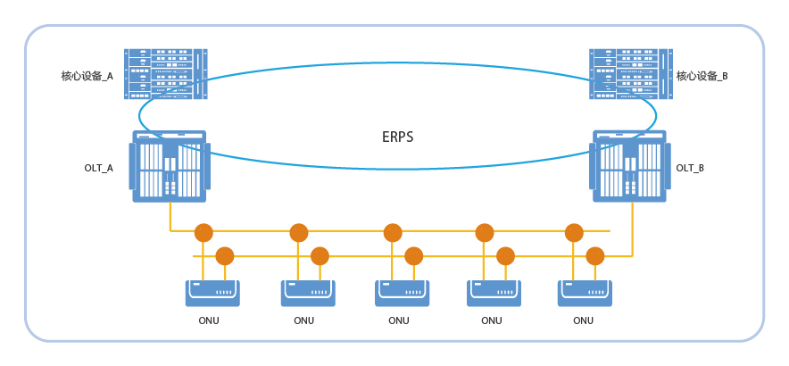 OLT上行以太環(huán)網(wǎng)保護(hù)采用ERPS(Ethernet Ring Protection Switching,以太環(huán)網(wǎng)保護(hù)倒換)技術(shù)實(shí)現(xiàn)。ERPS是ITU-T發(fā)布的G.8032中的環(huán)網(wǎng)協(xié)議,不但多個(gè)OLT之間可以組成環(huán)網(wǎng),還可以和其他支持ERPS的設(shè)備組環(huán)網(wǎng)。ERPS收斂速度快,能夠滿足工業(yè)高可靠性要求。