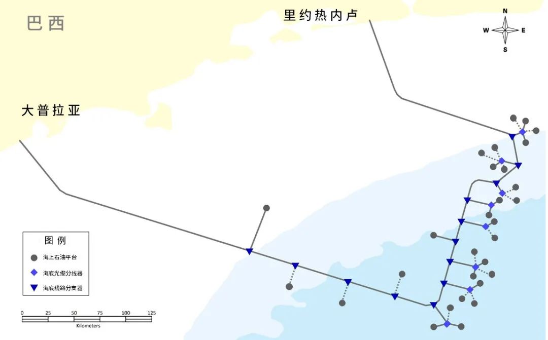 △ 巴西石油平臺海纜系統(tǒng)路由圖