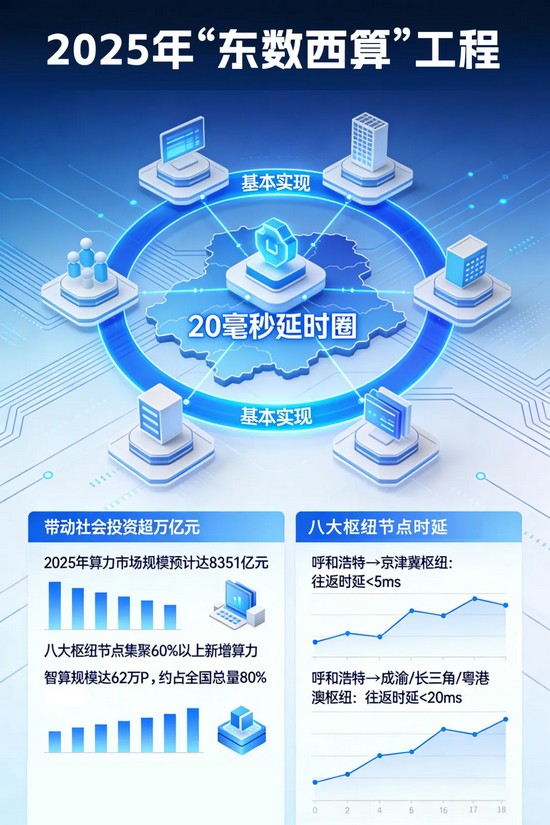 ICC訊   帶動社會投資超萬億元、2025年算力市場規(guī)模預計達8351億元、20毫秒時延圈基本實現(xiàn)……“東數(shù)西算”工程釋放的效能正在加速顯現(xiàn)。