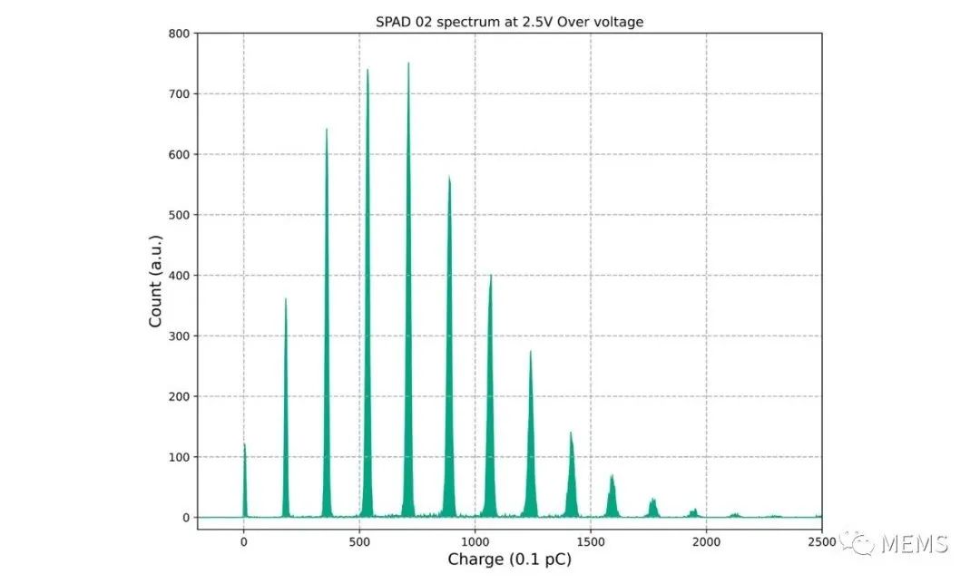 北極芯微SPAD單光子譜,清晰的單光子譜說明SPAD具備優(yōu)異的單光子分辨能力