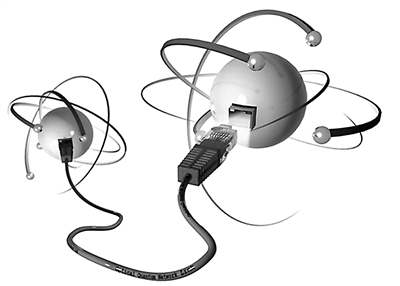 這只既死又活的貓就是量子物理界著名的“薛定諤貓”。 如果把量子疊加原理合到多個(gè)量子的情況會(huì)是什么呢?這就是量子力學(xué)的另一個(gè)基本原理——愛(ài)因斯坦稱為“遙遠(yuǎn)距離詭異的相互作用”的量子糾纏。就像雙胞胎心靈感應(yīng)一樣,這兩顆骰子無(wú)論相距多遠(yuǎn),擲出來(lái)的結(jié)果始終是一樣的(當(dāng)然,愛(ài)因斯坦堅(jiān)稱“上帝不會(huì)擲骰子”)。
