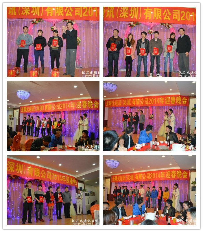 ICCSZ訊(編輯:Debi)在日益臨近的氤氳春節(jié)氣氛下,2014年1月17日晚,無限光通訊(深圳)有限公司(下稱“無限光通訊”)2014年迎春晚會圓滿舉辦。晚會現(xiàn)場抽獎不斷、驚喜連連,無限光通訊的同仁們多才多藝,節(jié)目表演不斷把現(xiàn)場氣氛帶向高潮,令臺下觀眾回味無窮。