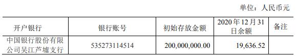 截至 2020 年 12 月 31 日,本公司募集資金在銀行賬戶(hù)的存儲(chǔ)情況如下: