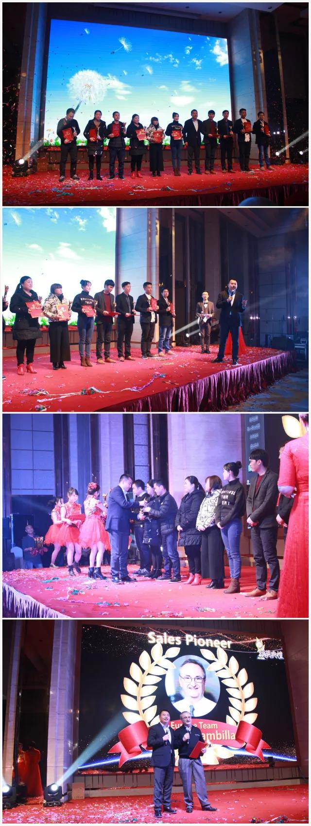 一波表演的精彩結(jié)束了,但是晚會(huì)的精彩還在繼續(xù),到了表彰過(guò)去一年在工作崗位上表現(xiàn)突出的華拓人——優(yōu)秀員工頒獎(jiǎng)典禮。范董親自上臺(tái)為每一位獲獎(jiǎng)的員工頒發(fā)證書(shū)、獎(jiǎng)杯,他們沒(méi)有豪言壯語(yǔ),他們沒(méi)有豐功偉績(jī)。但他們用行動(dòng)告訴我們什么是主人翁的精神。他們?cè)诠ぷ鲘徫簧暇ぞI(yè)業(yè),銳意進(jìn)取,服從整體安排,任勞任怨。工作態(tài)度誠(chéng)懇,有上進(jìn)心,能堅(jiān)持原則。范董說(shuō)到,他相信華拓優(yōu)秀的員工還有很多,很感謝每一位華拓人一年以來(lái)的辛勤付出和對(duì)公司的支持。最后還特別頒發(fā)了“銷(xiāo)售先鋒獎(jiǎng)”給歐洲分公司的同事Giorgio Brambilla,感謝他在剛加入華拓的第一年,就助力華拓攻下大客戶。