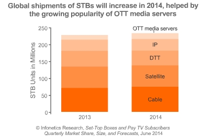 ICCSZ訊 近日,市場調(diào)研公司Infonetics發(fā)布其最新的2014年一季度關(guān)于機頂盒(STB)和付費電視市場報告。