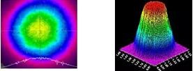 在切割應用中,聚焦光斑對切割出的質(zhì)量有很大影響,單模激光器的纖芯比較細,光束質(zhì)量優(yōu)于多模,能量分布呈高斯分布,中間能量密度最高,三維圖是一個尖圓的山峰狀。