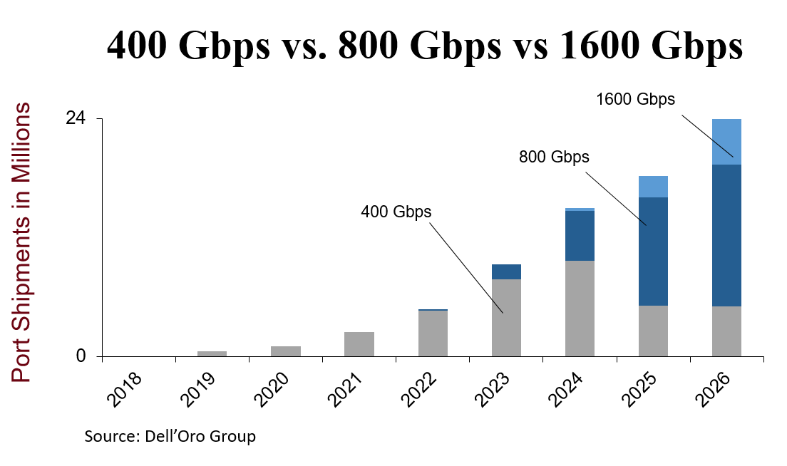 ”我們不僅看到云和非云市場(chǎng)在向更高速度遷移的路線圖方面存在差異,我們還看到超大規(guī)模企業(yè)(Hypersaler)之間存在差異。目前,每家超大規(guī)模企業(yè)都在交換機(jī)芯片、交換機(jī)基數(shù)和網(wǎng)絡(luò)拓?fù)浞矫孀龀霾煌倪x擇。我們預(yù)計(jì),當(dāng)他們遷移到下一代網(wǎng)絡(luò)時(shí),這種差異會(huì)增加,以適應(yīng)對(duì)人工智能和機(jī)器學(xué)習(xí)等新工作負(fù)載的需求,“Boujelbene補(bǔ)充道。