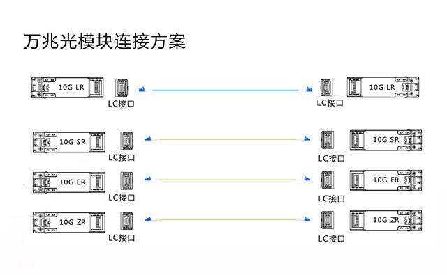 ③10G SFP+ ER光模塊直連:兩個(gè)模塊通過(guò)LC接口的單模光纖連接,適用于10km到40km距離的傳輸;