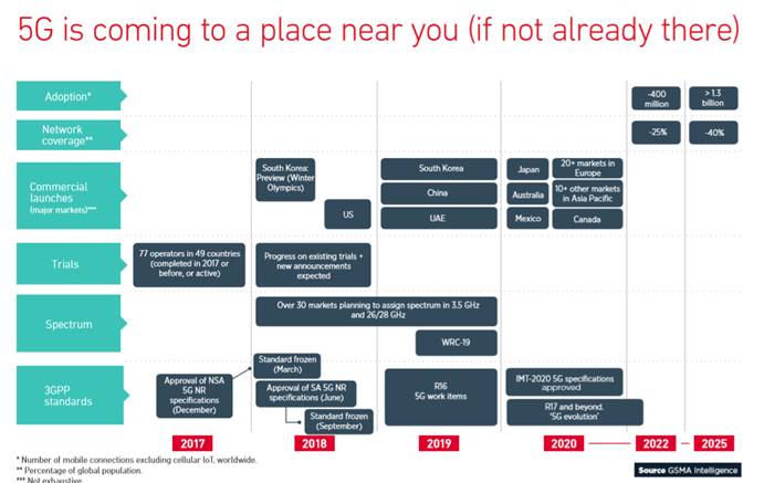 2018年至2019年,超過30個市場將會分配3.5GHz和26/28 GHz頻譜。