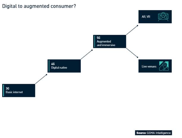 從上面的圖片可以看出,3G時代我們獲得基本網絡體驗,4G時代有了原生數字體驗,5G重在增強和沉浸體驗,比如VR/AR和實況演出。