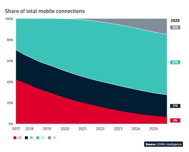 2025之前,預計5G消費者將會達到13.6億,占全球人口的15%,但是這些用戶主要集中在少數幾個國家。