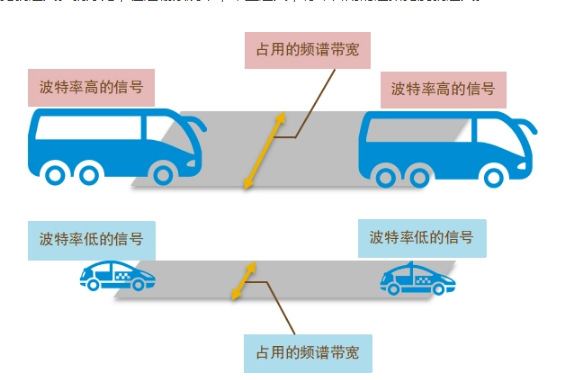 波特率越高,比特率越高,所占用的信道頻譜帶寬也越大。
