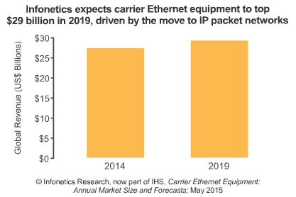 以太網(wǎng)設(shè)備市場從2014-2019年間的CAGR為1%,到2019年該市場將增長至290億美元;