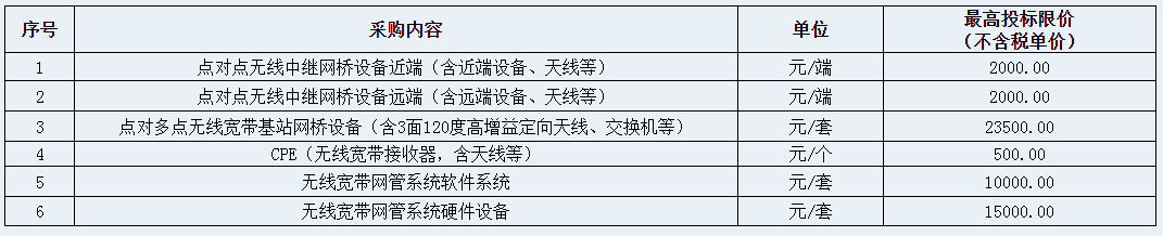 根據(jù)此前招標(biāo)公告,本項目采購內(nèi)容為在3個盟市(其中呼倫貝爾49個、錫林郭勒48個、巴彥淖爾30個)建設(shè)共計127個5.8GHz無線寬帶基站,另在普遍服務(wù)項目外全區(qū)預(yù)計建設(shè)23個5.8GHz無線寬帶基站,預(yù)計采購150套5.8GHz點對多點無線寬帶基站網(wǎng)橋設(shè)備、60對5.8GHz點對點無線中繼網(wǎng)橋設(shè)備、3套無線寬帶網(wǎng)管系統(tǒng)及相應(yīng)的集成服務(wù), 1500個配套CPE設(shè)備。供貨地點為全區(qū)各盟市。估算含稅價為518.67萬元。