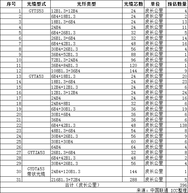 招標(biāo)內(nèi)容:中國聯(lián)通山西省分公司2024年混纜+G.655光纜集中采購