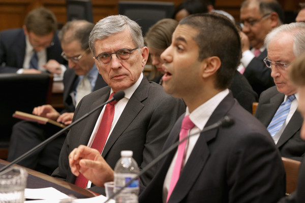圖為美國(guó)FCC現(xiàn)任主席Ajit Pai(右)與前主席Tom Wheeler