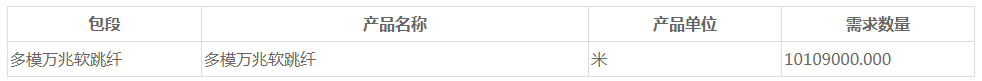 ICC訊 (編輯:Nicole) 中國移動啟動2021年至2022年多模萬兆軟跳纖產品集中采購(招標編號:CMCC20210000067),擬采購多模萬兆軟跳纖產品1,010.90萬米,采購需求滿足期為1年,設置最高投標總價不含稅金額不高于7791180元人民幣。