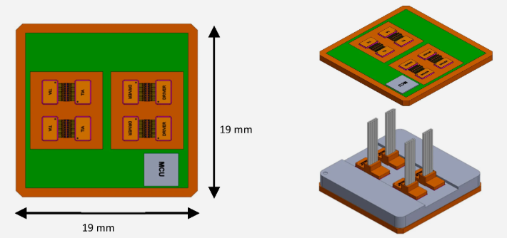 發(fā)射與接收部分可分別封裝為獨立的引擎模塊。VCSEL與光電二極管陣列可通過引線鍵合方式連接至引擎基板,并借助低成本的塑料陣列透鏡,實現(xiàn)光信號與多模光纖的垂直耦合。