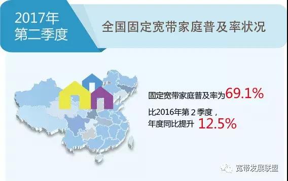 ICCSZ訊 近日,我國寬帶發(fā)展聯(lián)盟發(fā)布了第五期《中國寬帶普及狀況報告》(2017年第二季度),報告顯示,截至2017年第二季度,我國固定寬帶家庭用戶數(shù)累計達(dá)到30607.3萬戶,普及率達(dá)到69.1%;移動寬帶(3G和4G)用戶數(shù)累計達(dá)到108266.2萬戶(包含基礎(chǔ)電信企業(yè)和移動轉(zhuǎn)售業(yè)務(wù)服務(wù)提供商的移動寬帶用戶),移動寬帶用戶普及率達(dá)到78.3%。我國固定寬帶家庭普及率和移動寬帶用戶普及率較2016年第二季度首次發(fā)布報告時年度同比提升分別達(dá)到12.5和14.5個百分點;在我國寬帶用戶和人口基數(shù)巨大的前提下,寬帶普及水平年度提升超過兩位數(shù),可謂實現(xiàn)了“飛速”增長。