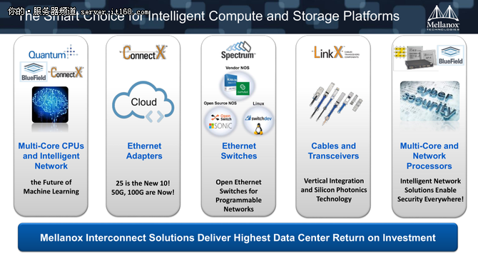 當(dāng)然,在起家的IB網(wǎng)絡(luò)上,Mellanox依然呈現(xiàn)出業(yè)界的領(lǐng)先者地位。相比于主流的100G網(wǎng)絡(luò)來(lái)說(shuō),Mellanox在現(xiàn)場(chǎng)向媒體宣布了200G產(chǎn)品更多的細(xì)節(jié),比如在性能、在架構(gòu)以及在能耗方面的改進(jìn)。這些產(chǎn)品預(yù)計(jì)在明年就可以正式上市,甚至200G的以太網(wǎng)交換機(jī)也會(huì)同期出現(xiàn)。