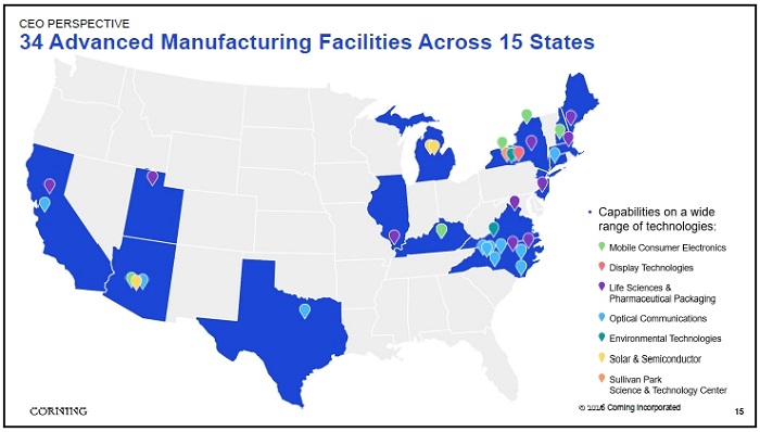 針對美國可能加征的關(guān)稅,康寧表示影響有限。Weeks解釋說:"我們通過就近設(shè)廠自然對沖關(guān)稅風(fēng)險(xiǎn)。目前中美現(xiàn)有關(guān)稅對每季度的每股收益僅影響0.01至0.02美元。"康寧在美國擁有34家先進(jìn)制造工廠,包括位于北卡羅來納州的全球最大光纖工廠。