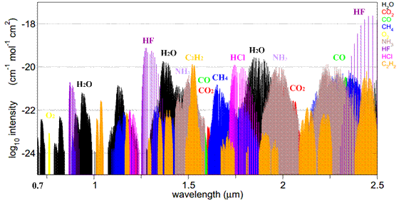如下是部分氣體分子激光吸收光譜譜線