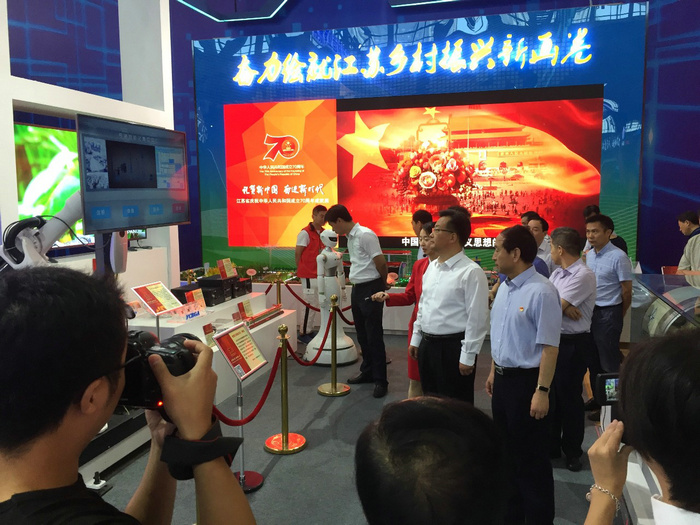 ICCSZ訊 近日,江蘇省慶祝中華人民共和國成立70周年成就展在南京國際博覽中心2號館正式開展,亨通集團新一代綠色光纖材料、量子保密通信、智能制造工廠等創(chuàng)新發(fā)展成果,以圖片、視頻、模型、實物等多種形式在展覽中展出,引起廣泛關注和好評。展出期間,省委書記婁勤儉、省長吳政隆、省政協(xié)主席黃莉新、省委副書記任振鶴等領導同志前來亨通展臺參觀。