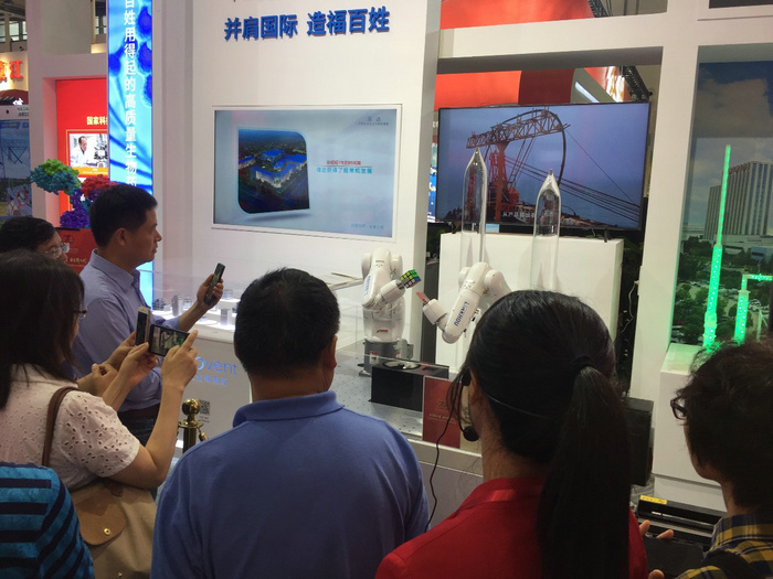 現(xiàn)場多媒體大屏、模型與智能機器人,互動展示了亨通全球單體規(guī)模最大的綠色光纖材料生產(chǎn)基地智能制造生態(tài)全景;量子秘鑰分發(fā)系統(tǒng)實物展示了亨通在量子保密通信領域的先進技術……一項項創(chuàng)新成果吸引了觀眾的廣泛關注,亨通展臺前人流如織,參觀者絡繹不絕。