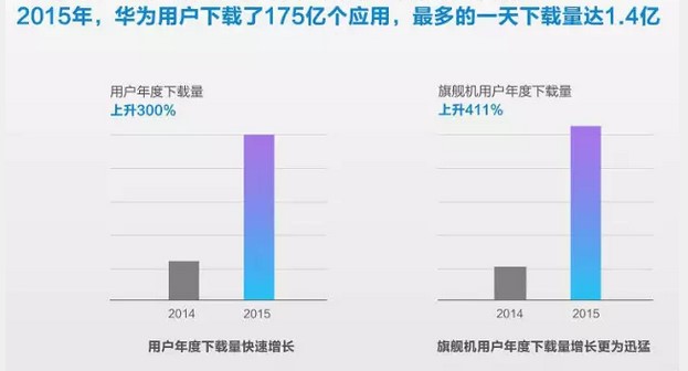 除了華為基礎(chǔ)云服務(wù),華為應(yīng)用市場(chǎng)中的各類(lèi)第三方應(yīng)用也備受消費(fèi)者歡迎,白皮書(shū)顯示,每天有超過(guò)2500萬(wàn)用戶(hù)在華為應(yīng)用市場(chǎng)尋找自己喜愛(ài)的應(yīng)用,華為應(yīng)用市場(chǎng)2015年全年應(yīng)用下載量175億,單日下載峰值高達(dá)1.4億。