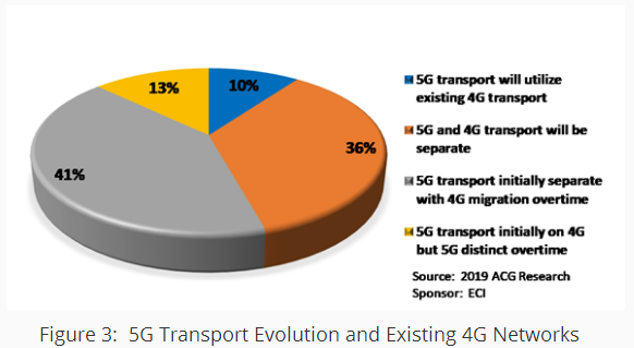 ACG發(fā)現(xiàn)有關(guān)4G和5G傳輸網(wǎng)絡(luò)如何共存有不同觀點(diǎn) - 無論是最初還是長期。雖然大家都意識到5G傳輸解決方案需要更高容量和更快端口速度來支持5G網(wǎng)絡(luò),但爭論的焦點(diǎn)是如何實(shí)現(xiàn)這一目標(biāo)。在ACG的研究中,41%受訪者認(rèn)為,5G傳輸網(wǎng)絡(luò)最初將與現(xiàn)有4G傳輸解決方案分開部署,而4G網(wǎng)絡(luò)則隨著時間的推移遷移/融合5G。然而,有36%的參與者認(rèn)為5G和4G傳輸網(wǎng)絡(luò)將保持完全獨(dú)立和獨(dú)特。13%的參與者認(rèn)為5G最初將部署在4G傳輸網(wǎng)絡(luò)上,但5G將隨著時間的推移而分離并變得截然不同,而10%的人認(rèn)為5G最初將部署在4G傳輸基礎(chǔ)設(shè)施上并在整個部署生命周期內(nèi)保持融合。