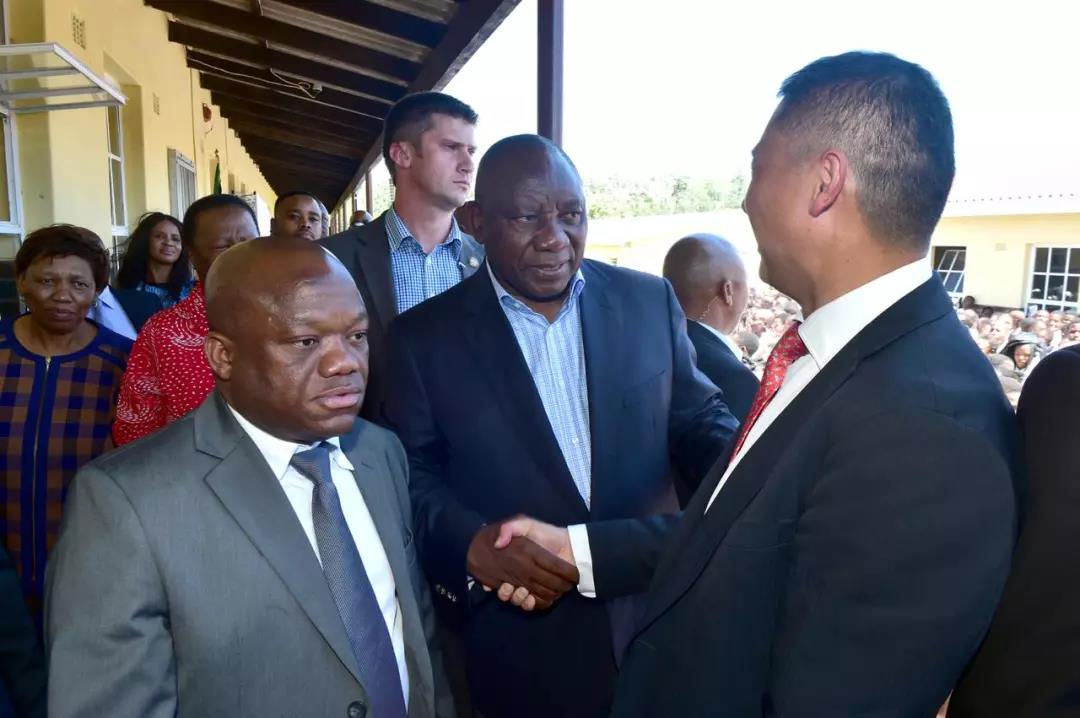 1月10日上午,南非總統(tǒng)拉馬福薩一行視察AberSchool所在學(xué)校Siqongweni高級(jí)中學(xué)并發(fā)表主題演講,教育部長(zhǎng)、科技部長(zhǎng)及夸祖魯納塔爾省主要領(lǐng)導(dǎo)一起陪同視察。亨通南非阿伯代爾公司CEO宋海燕熱情接待。