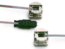 本文選擇MiniPOD的原因是其嵌入式平行光學(xué)組態(tài)可直接安裝到印刷電路板上,帶來更好的電氣與機械設(shè)計。MiniPOD光學(xué)模塊的占用面積為18.6毫米(mm)×22毫米,并且可接受十二通道的扁平纜線或圓形纜線。扁平纜線的優(yōu)點包括厚度低及模塊可緊密堆棧;圓型纜線則提供更好的穩(wěn)固度及更高彈性的彎折,圖3為透過扁平纜線耦合并使用業(yè)界標準MTP連接器MiniPOD光學(xué)模塊。