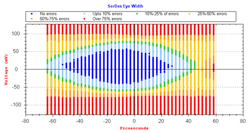但礙于先前所討論的技術(shù)問題,此一光纖纜線目前并無法具備PCIe動態(tài)電源管理、帶內(nèi)同步重置(僅支持帶外獨立重置)功能。由圖5眼圖可說明接收器驅(qū)動30公尺纜線時,擁有良好的訊號完整性及無錯誤的數(shù)據(jù)回復(fù)。