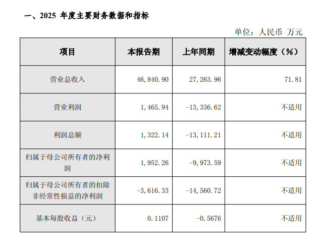 ICC訊 長光華芯公司發(fā)布2025年度業(yè)績快報。2025 年度長光華芯實現(xiàn)營業(yè)收入4.68億元,同比增長71.81%;實現(xiàn)歸屬于母公司所有者的凈利潤 1952.26萬元,同比扭虧為盈。
