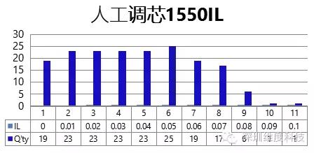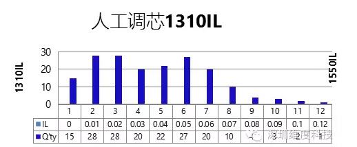 使用人工調(diào)芯與自動機臺,各選10條跳線進行調(diào)K后互配測試IL.1310與1550各有180組數(shù)據(jù)。