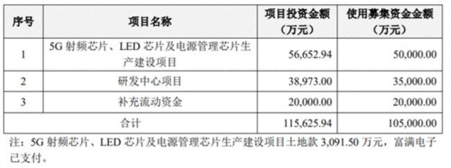而在不久前披露的定增預(yù)案更顯示出其加碼5G射頻芯片、LED芯片及電源管理芯片的決心。在2021年度向特定對象發(fā)行A股股票預(yù)案中,富滿電子擬向特定對象發(fā)行A股股票募集資金總額不超過105,000.00萬元,用于“5G射頻芯片、LED芯片及電源管理芯片生產(chǎn)建設(shè)項目”、“研發(fā)中心建設(shè)項目”和補充流動資金。