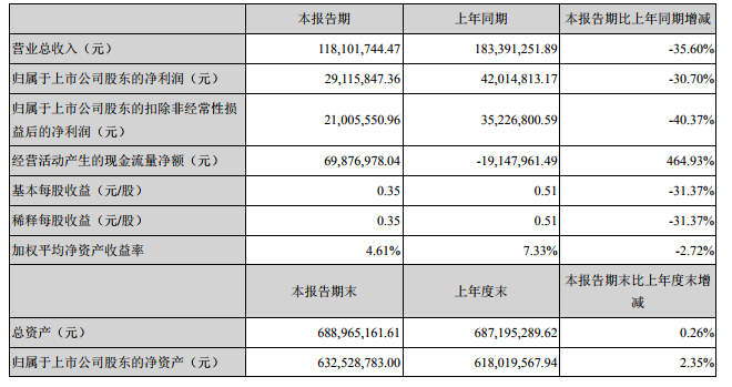 ICCSZ訊 (編輯:Nicole)博創(chuàng)科技股份有限公司(簡稱:博創(chuàng)科技或公司)公布2018年上半年度報告:報告期內(nèi),公司實現(xiàn)營業(yè)收入1.18億元,比上年同期下降35.60%;歸屬于母公司股東凈利潤2,911.58萬元,比上年同期下降30.70%。2018年上半年,公司光無源器件業(yè)務(wù)銷售平穩(wěn),與去年基本持平;公司光有源器件業(yè)務(wù)受客戶產(chǎn)品結(jié)構(gòu)調(diào)整,銷售下降。受有源器件銷售規(guī)模下降帶來的影響,公司整體毛利率比上年同期下降5.45個百分點。預(yù)計2018年第三季度公司業(yè)務(wù)將保持平穩(wěn)態(tài)勢。