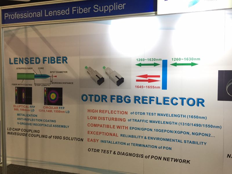盛佳主要展示公司的兩大產(chǎn)品線:光纖光柵FBG和光纖透鏡(Lensed Fiber)。盛佳表示,在一根光纖上把FBG和光纖透鏡一起來(lái)做,把兩個(gè)產(chǎn)品結(jié)合在一起,這在國(guó)內(nèi)屬于首家。