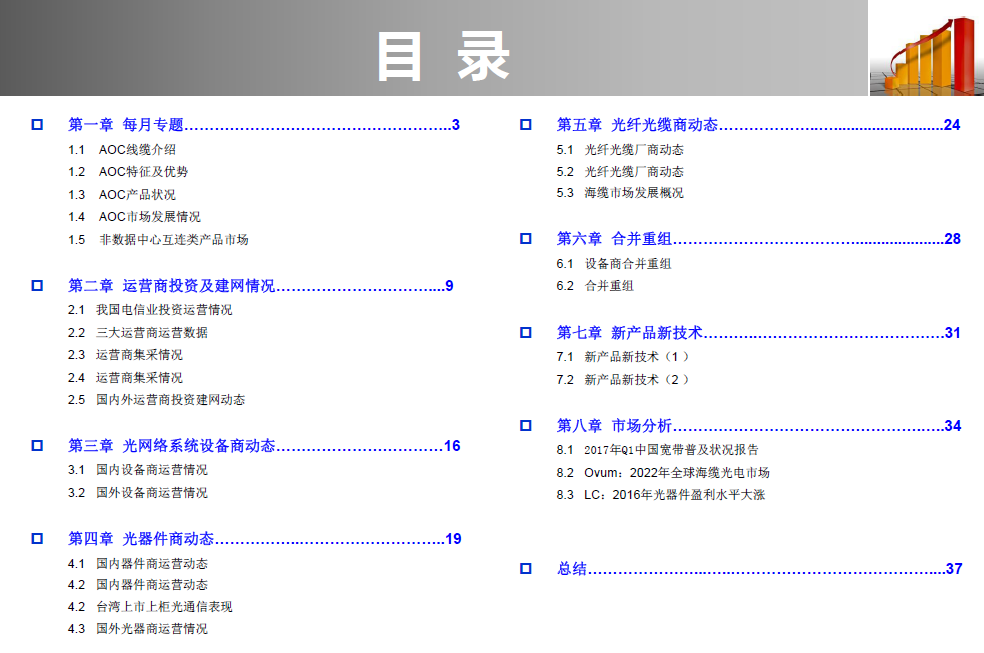 訊石作為光通訊信息咨詢平臺,旨在為廣大光通訊朋友們提供最前沿的信息動態(tài)。作為訊石每月的月報,在保證了其時效性的前提下,我們選擇了時下最熱門的焦點進行了分析,內(nèi)容詳實豐富,閱讀月報能及時把握好行業(yè)最新的全球動態(tài),為分析決策提供參考,為市場開拓提供數(shù)據(jù)輔助。不論是是基于自身企業(yè)的需求,還是對整個行業(yè)的了解與學習,訊石真摯的希望我們有幫到您!