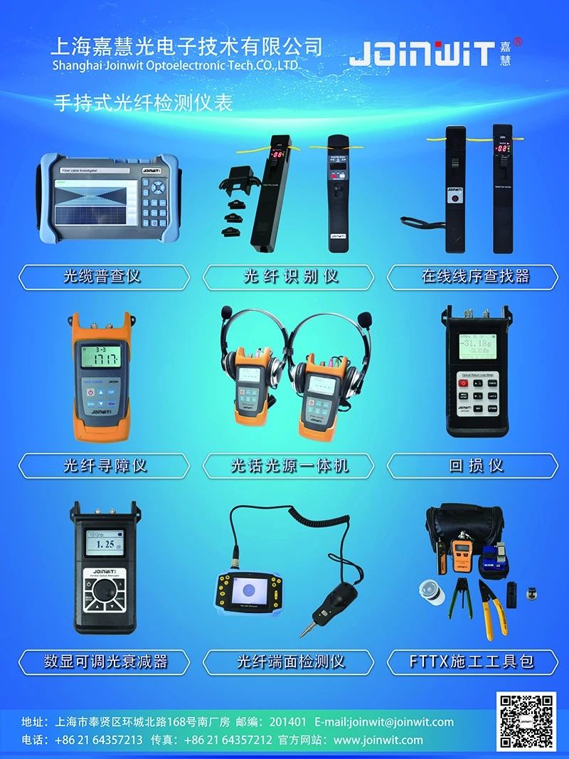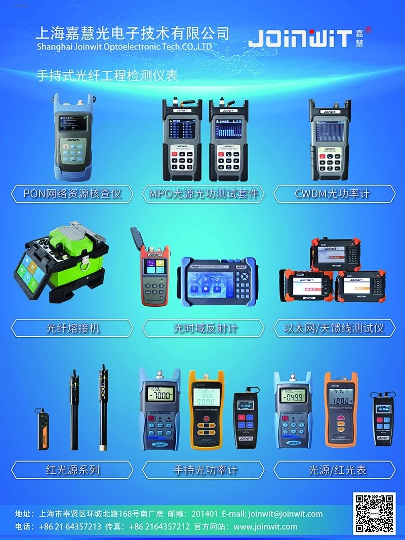 上海嘉慧光電子技術(shù)有限公司成立于1998年,坐落于上海市奉賢區(qū)奉浦工業(yè)區(qū)。公司長期立足于光通信網(wǎng)絡(luò)檢測研究,是集研發(fā)、生產(chǎn)和服務(wù)于一體的高新技術(shù)企業(yè)。主要產(chǎn)品有光源、光功率計、OTDR等各類便攜式光儀表,和以插回?fù)p、PDL、誤碼率檢測為基礎(chǔ)的光器件光模塊檢測系統(tǒng)。公司業(yè)務(wù)遍及國內(nèi)各電信運(yùn)營商、電信工程公司和光器件設(shè)備制造商,產(chǎn)品符合國際通用標(biāo)準(zhǔn),適用于全球各地。