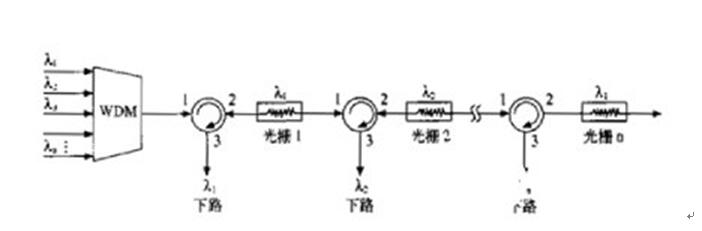 圖3 光環(huán)形器和光纖光柵組成的DWM解復(fù)用結(jié)構(gòu)