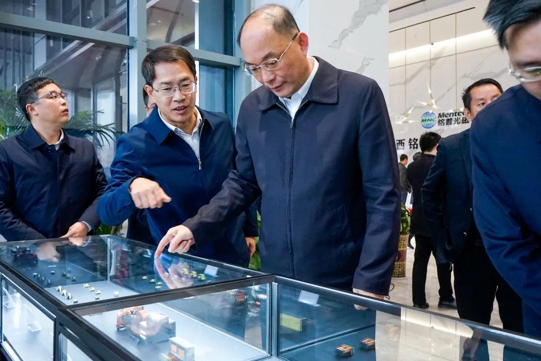 投產儀式結束后,撫州市人大常委副主任、廣昌縣委書記許愛軍等領導和嘉賓參觀了江西銘普展廳、生產車間,了解銘普發(fā)展歷程、企業(yè)文化、生產制造設備等。