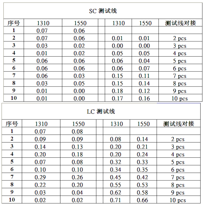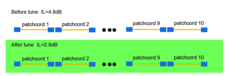 每個(gè)光纖連接器經(jīng)過調(diào)芯后在串聯(lián)的接入損耗1L=0.8dB