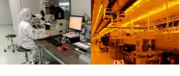 圖3 (a)傳統(tǒng)手工校對(duì)光器件 (b)CMOS規(guī)模化自動(dòng)化生產(chǎn)