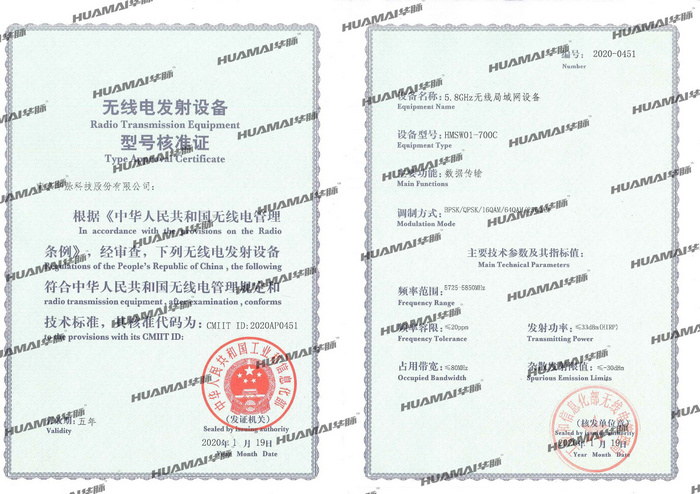 根據(jù)《中華人民共和國無線電管理條例》,公司向工業(yè)和信息化部申請了無線電發(fā)射設(shè)備型號核準(zhǔn),經(jīng)相關(guān)部門嚴格檢測和審查,符合中華人民共和國無線電管理規(guī)定和技術(shù)標(biāo)準(zhǔn),工業(yè)和信息化部頒發(fā)了無線電發(fā)射設(shè)備型號核準(zhǔn)證書和核準(zhǔn)代碼。這一產(chǎn)品將為公司注入新的活力,助力華脈科技未來大展宏圖。