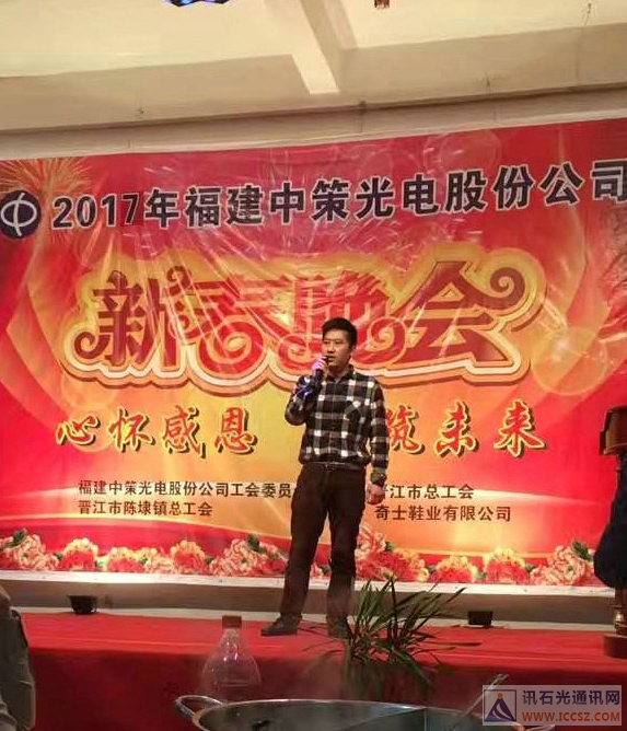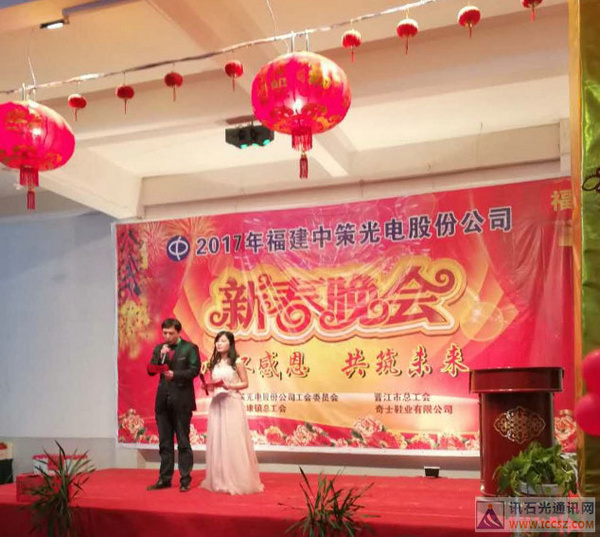 Iccsz訊 1月23日報道,金雞報曉山河壯,彩鳳鳴春歲月新!福建中策光電股份有限公司22日晚舉辦了2017年新春晚會,心懷感恩,共筑未來!