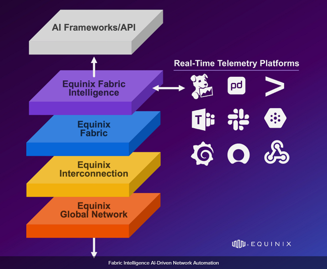 Fabric Intelligence:這是一個軟件層,它增強了Equinix Fabric®(一項按需全球互聯(lián)服務),為AI和多云工作負載提供實時感知和自動化功能。該服務將于2026年第一季度推出,可與AI編排工具集成以自動化連接決策,利用實時遙測數(shù)據(jù)實現(xiàn)深度可觀測性,并動態(tài)調(diào)整路由和分段以優(yōu)化性能并簡化網(wǎng)絡運營。通過使網(wǎng)絡能夠響應工作負載需求,F(xiàn)abric Intelligence幫助企業(yè)減少人工操作,加速部署,并跟上AI的規(guī)模和速度。