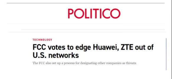 美國“政客”網(wǎng)站消息,當(dāng)?shù)貢r間11月22日,美國聯(lián)邦通信委員會(FCC)通過禁止運營商使用聯(lián)邦補貼資金購買華為和中興設(shè)備的決定。“政客”網(wǎng)站認為,這是美國聯(lián)邦政府試圖遏制中國通信企業(yè)影響的最新努力。